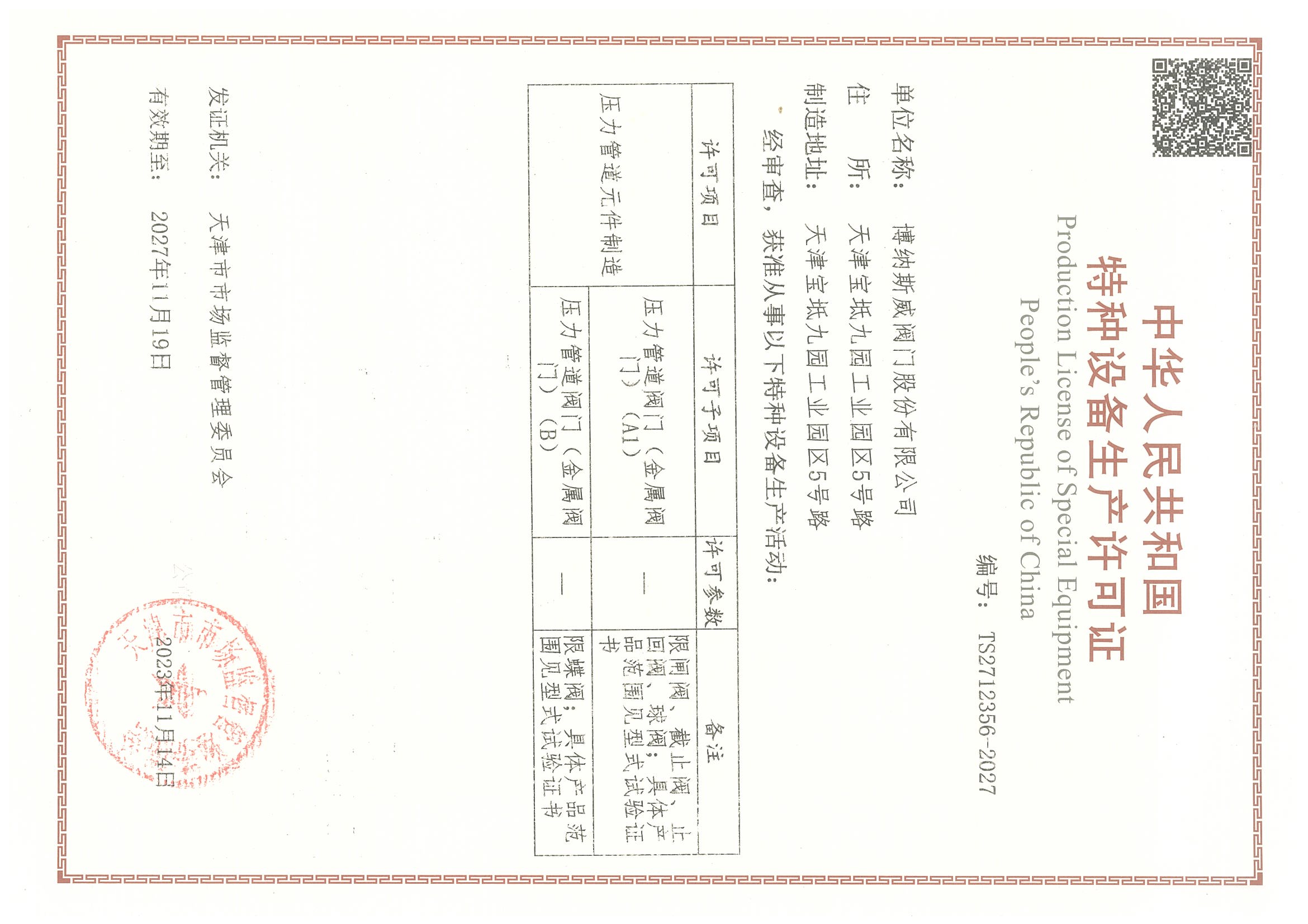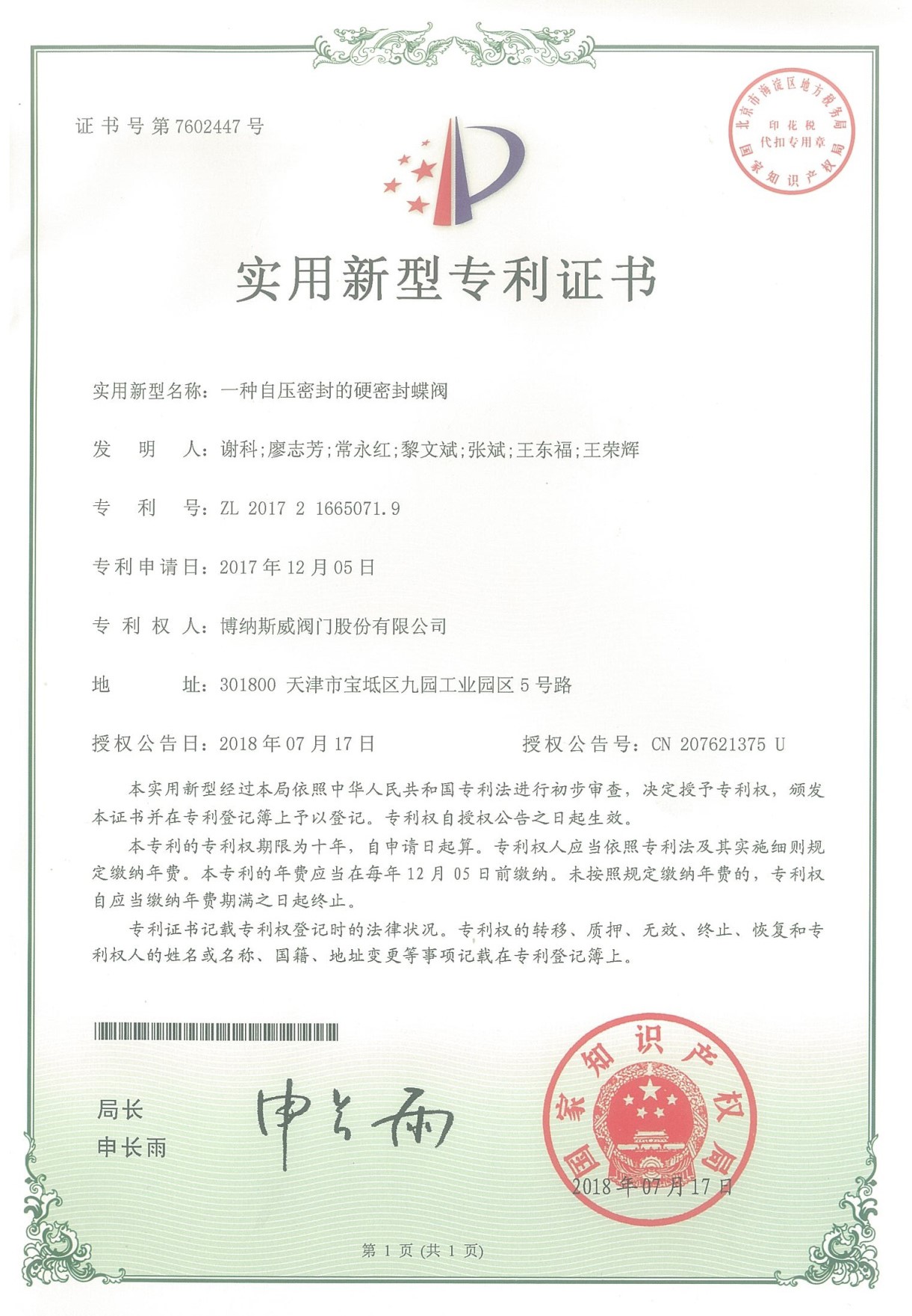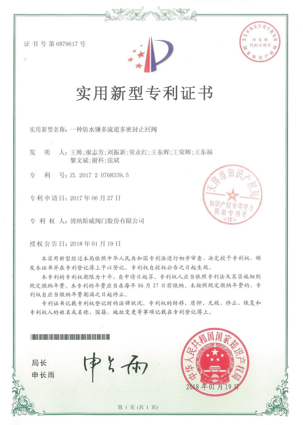 公司先后通過ISO9001質量管理體系、ISO14001環境管理體系、GB/T45001職業健康安全管理體系、歐盟CE等認證,榮獲“高新技術企業”、“國防特種閥門研發中心”、“天津市企業技術中心”等榮譽。公司與武漢大學、長沙理工大學、華北水利水電大學廣泛開展產學研合作。潛心投入也結出累累碩果:獲得200余項專利技術,主編、參編國家和行業標準10多項,在業內重要期刊發表10余篇論文,榮獲中國機械工業科學技術獎1項。
