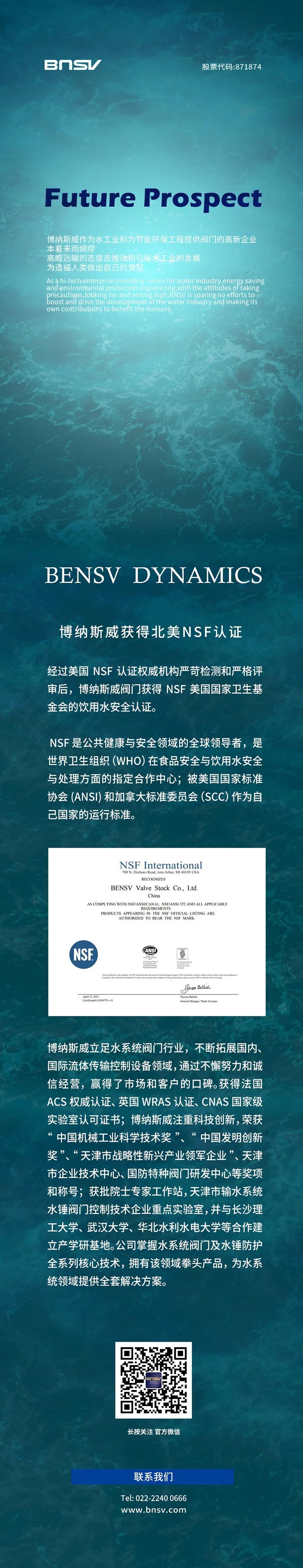 博納斯威獲得北美NSF認證
