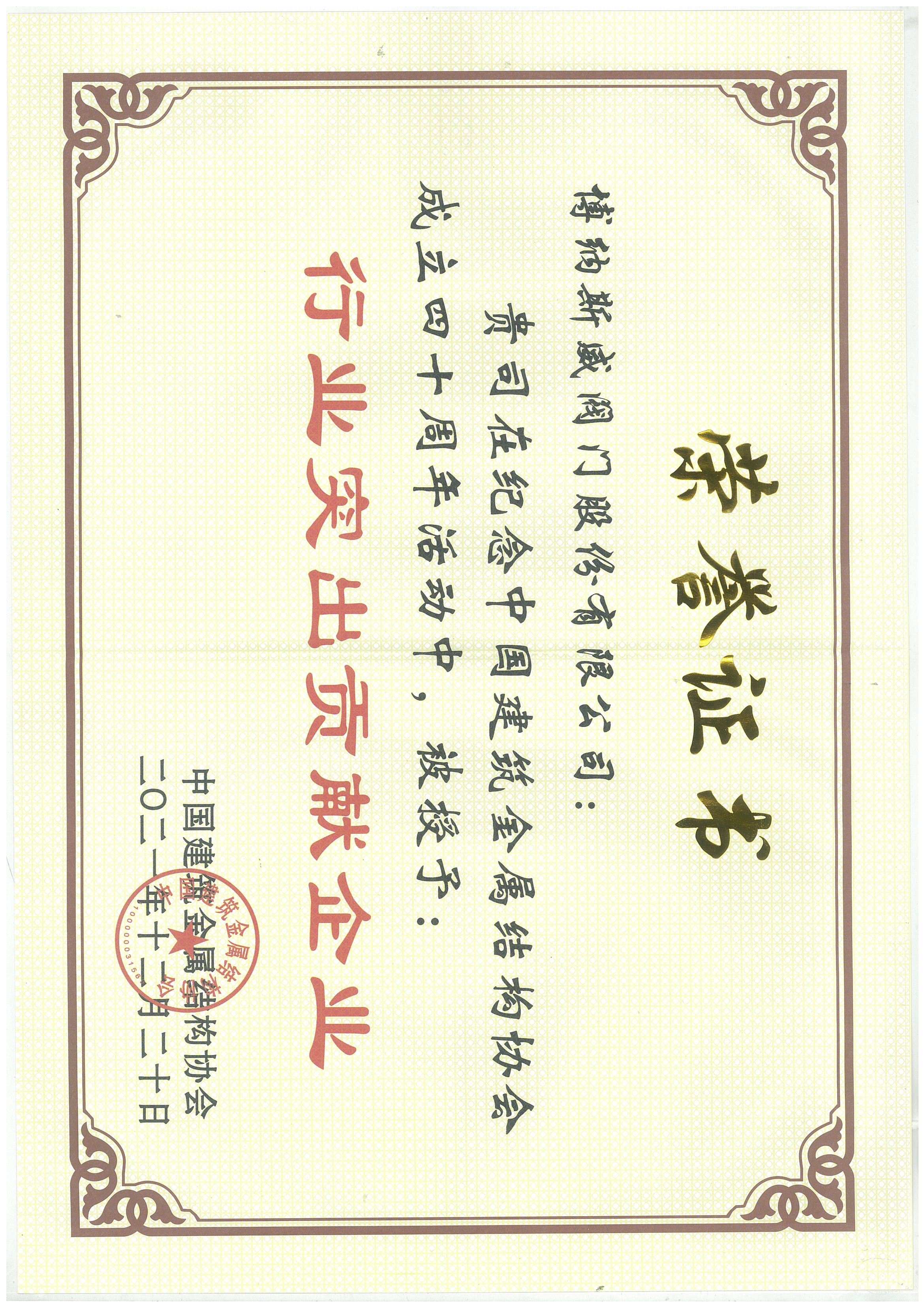 博納斯威閥門股份有限公司榮膺行業多項榮譽:公司被評為“行業突出貢獻企業”、總經理王榮輝被評為“行業卓越企業家”、總工程師廖志芳被評為“行業優秀專家”。