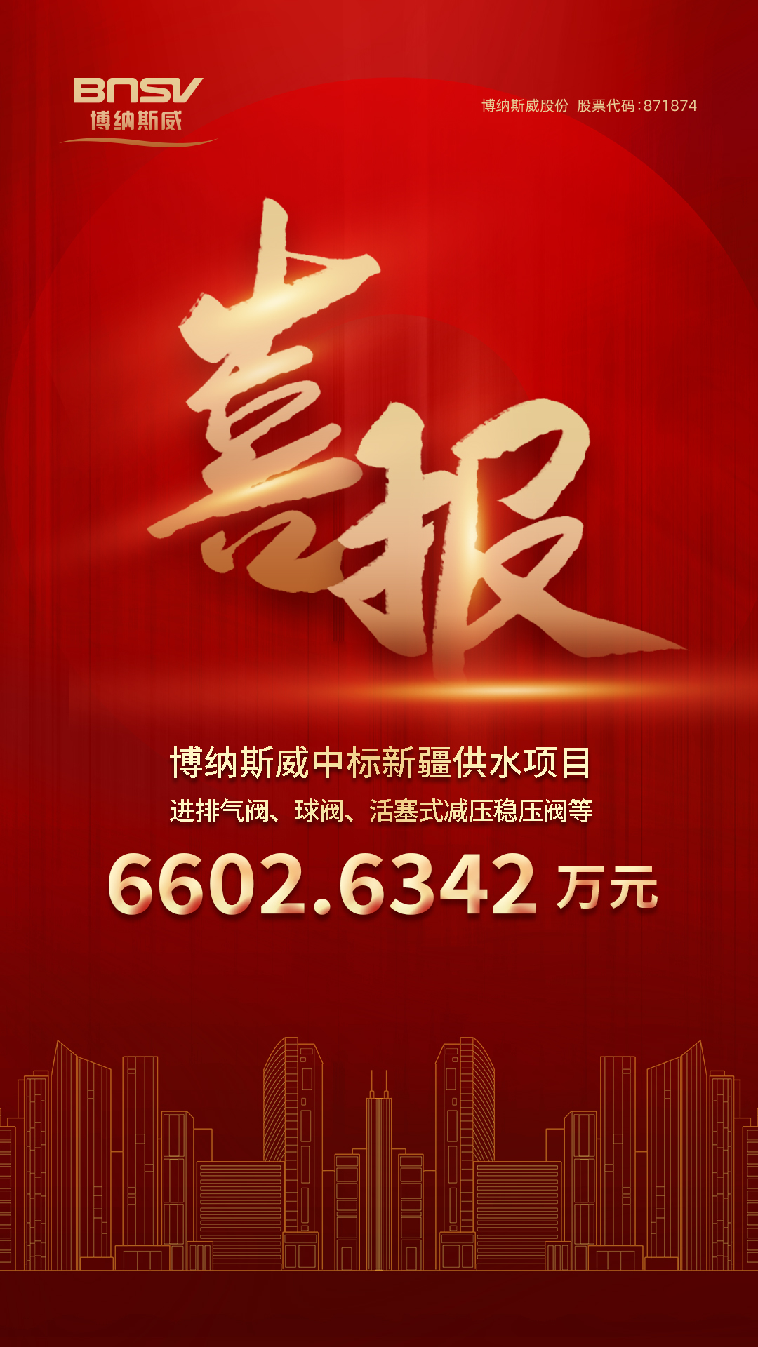 喜報(bào)!博納斯威中標(biāo)新疆4個(gè)供水項(xiàng)目6602.6342萬(wàn)元