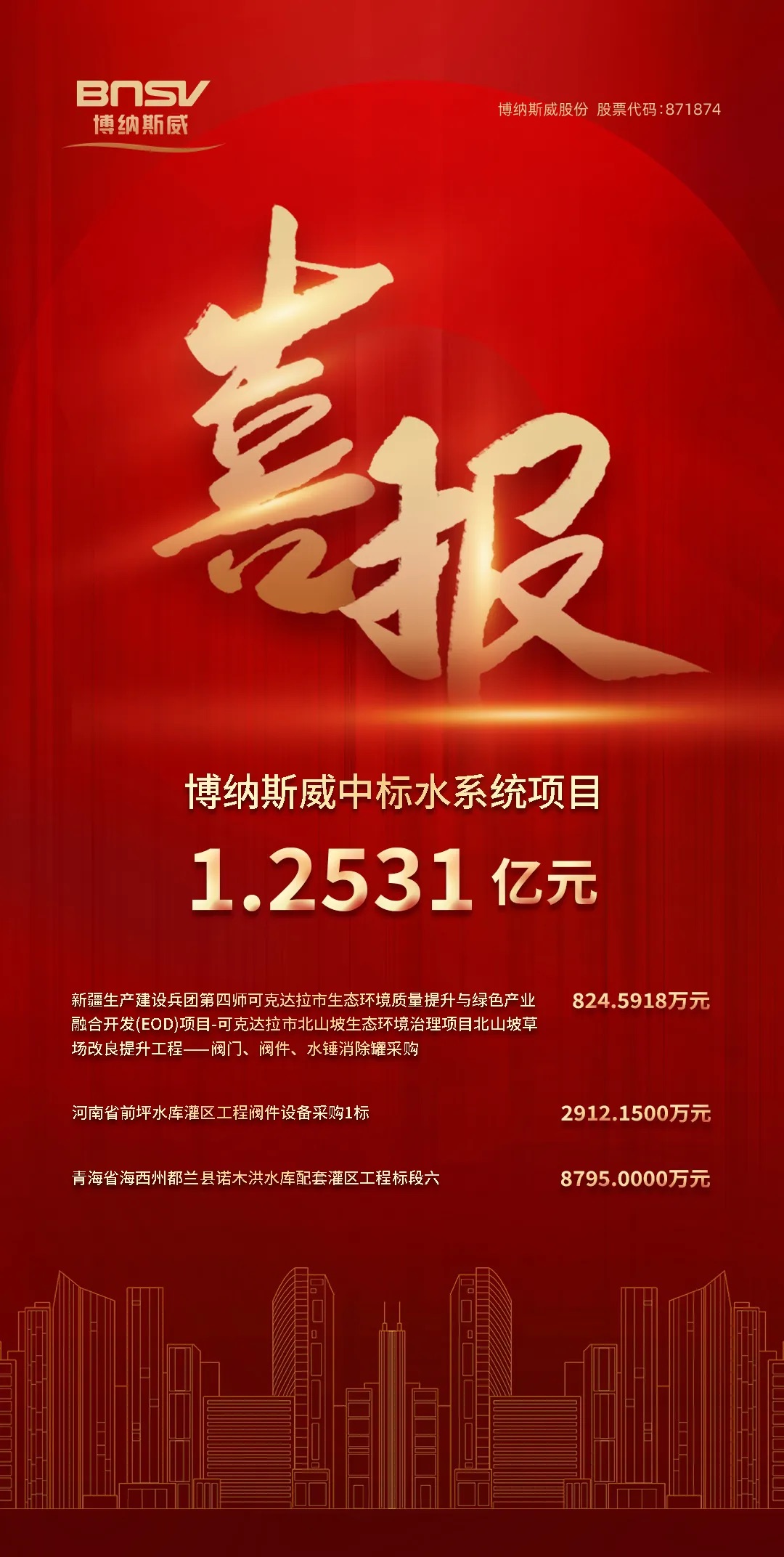 喜報(bào)!博納斯威中標(biāo)水系統(tǒng)項(xiàng)目1.2531億元
